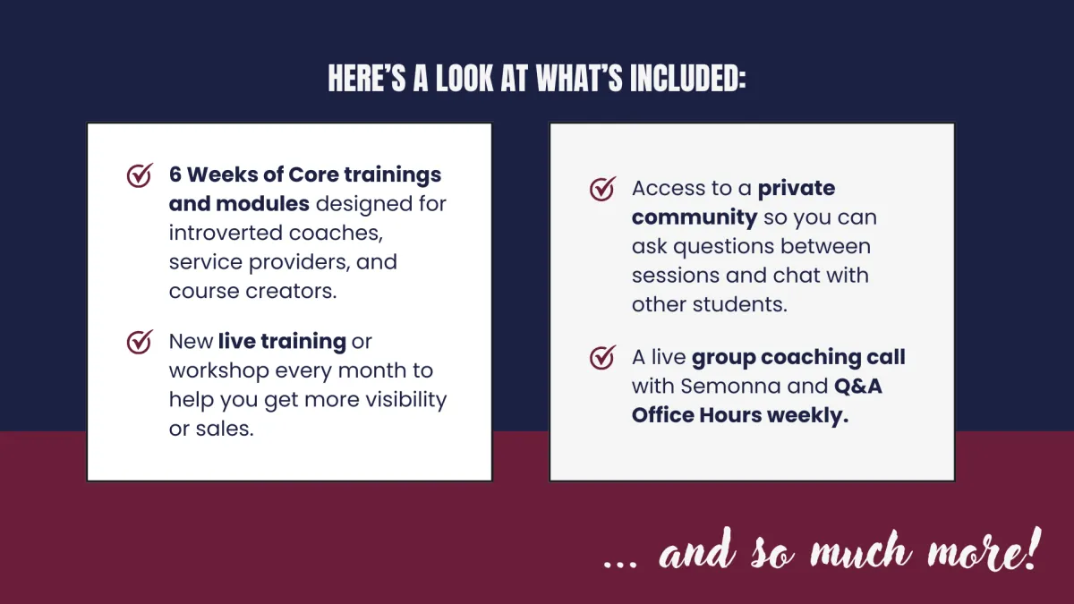 Yes. If fear, your beliefs or lack of systems is standing in the way of you asking for the sale, sharing your offers or starting the business. If you want to grow your audience or clients, I recommend joining me in Sought After instead.